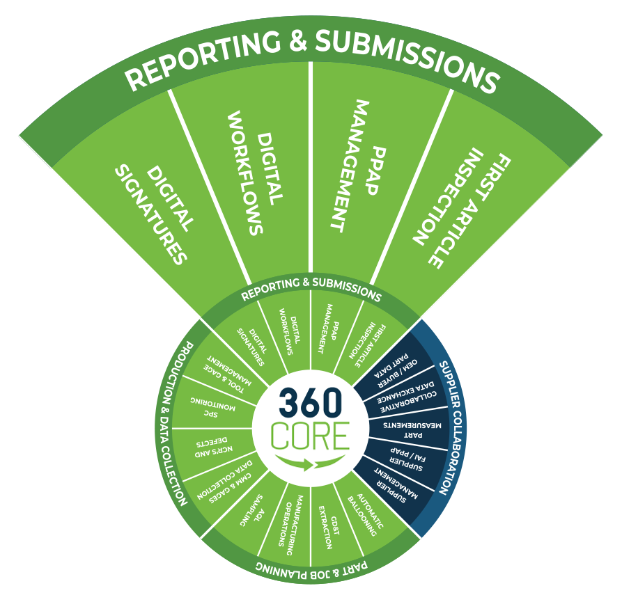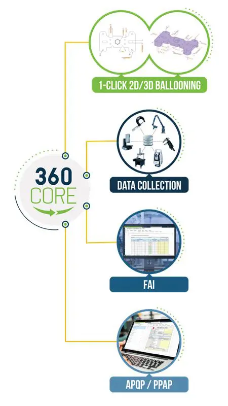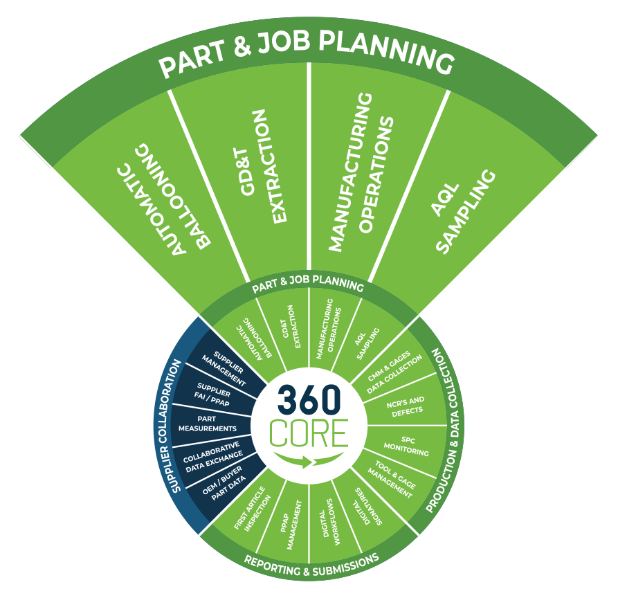 360 CORE; CMMC uyumlu, hepsi bir arada üretim kalite yönetim aracıdır. Kalite planlama, denetim ve raporlama süreçlerinizi optimize eder. Kullanımı kolay araçları sayesinde ekiplerinizin kaliteli parçaları zamanında, belirlenen kalite standartlarında ve bütçeye uygun şekilde üretmesini sağlar.