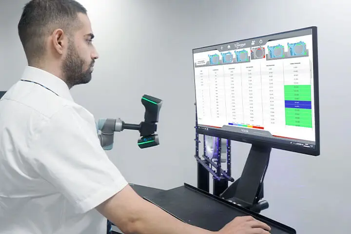 AutoScan-K, farklı boyut, ağırlık ve malzeme özelliklerine sahip iş parçalarını yüksek doğrulukla kontrol edebilir. Sistem, 45 adede kadar lazer çizgisi oluşturarak yüksek yoğunluklu veri taraması yapabilir ve saniyede 1.650.000 ölçüm hızına ulaşabilir. Zorlu endüstriyel ortamlarda bile 0,010 mm çözünürlük ve 0,030 mm/m hacimsel doğruluk ile kesin 3B denetim sağlar. Bu sayede üretim süreçlerinde kalite kontrol, tekrarlanabilirlik ve güvenilirlik en üst seviyeye çıkarılır.
